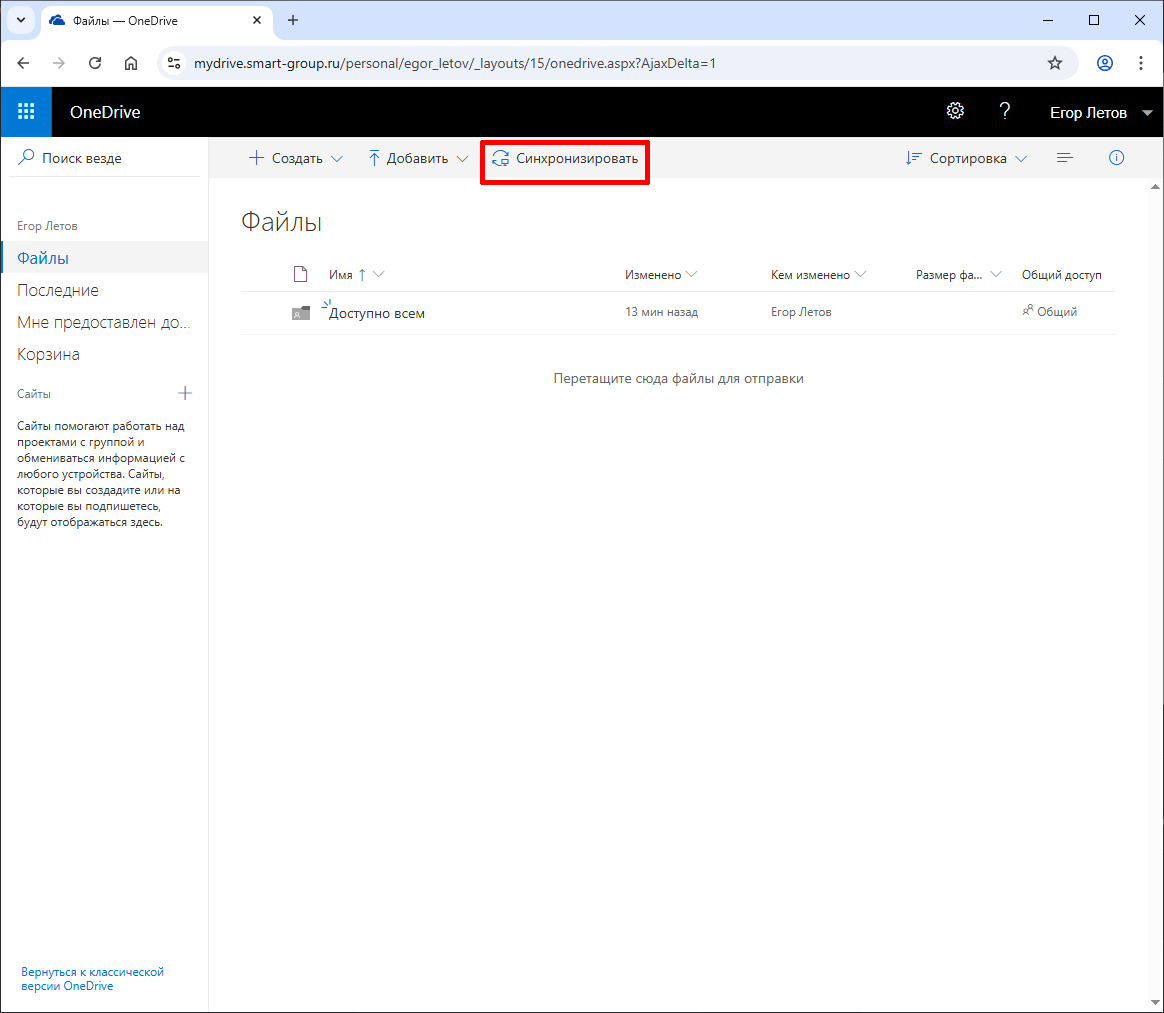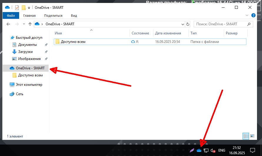 Личное хранилище синхронизируется с приложением OneDrive, которое доступно в разделе "Быстрый доступ" проводника под названием OneDrive - SMART или в области уведомлений на панели задач в виде соответствующей иконки.
