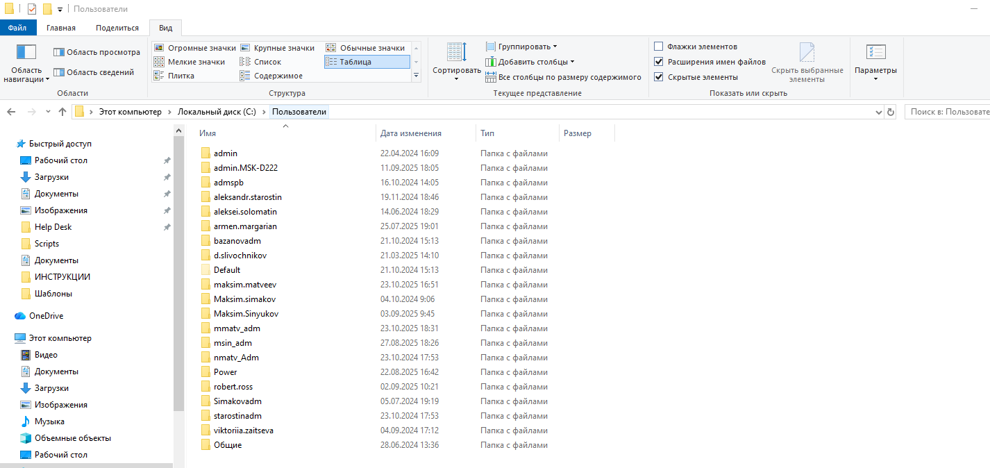 2. Перейдите сверху в вид и поставте галочку показывать скрытые элементы