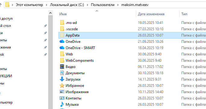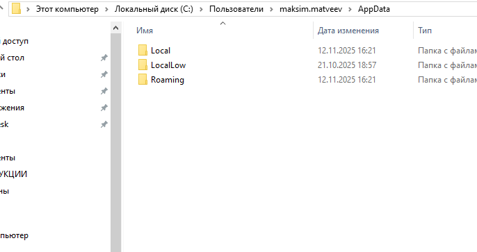 4. Переходим в папку AppData - Roaming