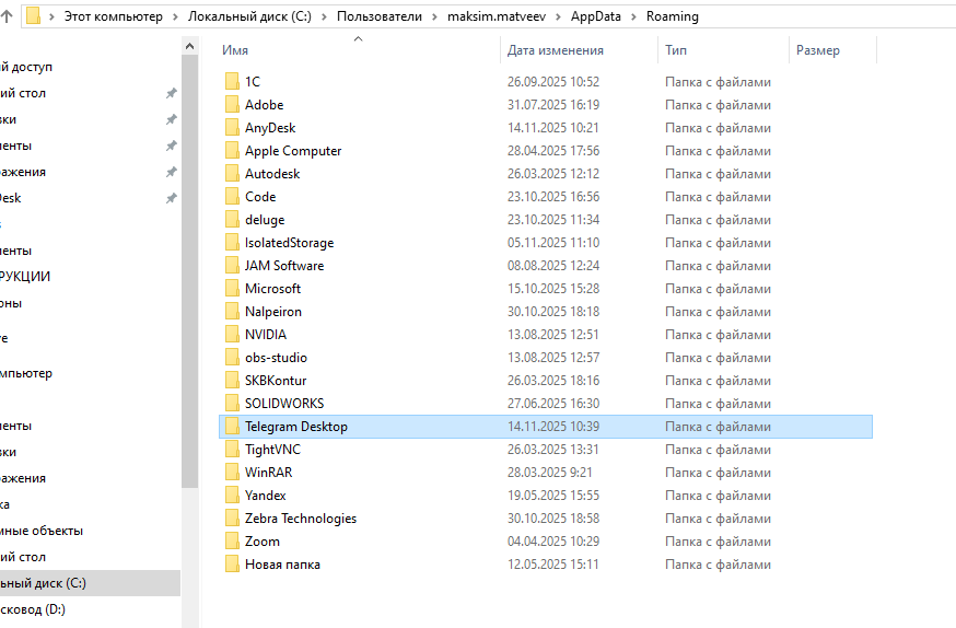 5. И удаляете папку telegram desktop (перед этим закрываем приложение)