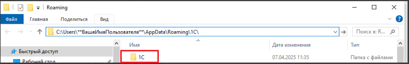 C:\Users\**ВашеИмяПользователя**\AppData\Roaming\1C\