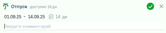 3. Откроется окно с выбором дат. Необходимо обозначить период планируемого отпуска и нажать