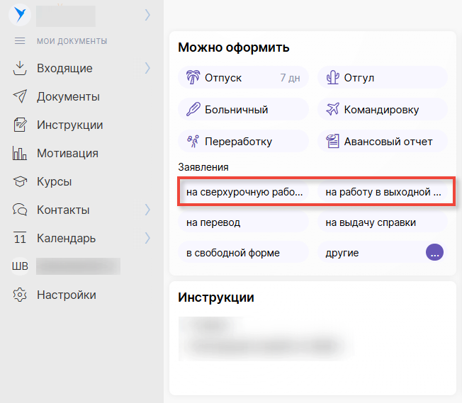 Для запуска процесса необходимо на главной странице Saby My выбрать необходимое заявление.